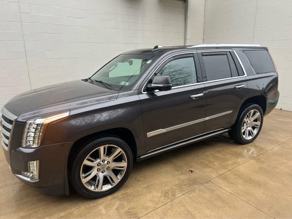 ASSIST STEPS, POWER-RETRACTABLE, RUNNING SIDE BOARD WITH LED LIGHTING, WHEELS, 22 X 9 (55.9 CM X 22.9 CM) DUAL 7-SPOKE ULTRA-BRIGHT FINISH ALUMINUM WITH PREMIUM PAINT, CADILLAC CUE INFORMATION AND MEDIA CONTROL SYSTEM WITH EMBEDDED NAVIGATION AM/FM stereo, 8 diagonal color information display featuring touch response, haptic feedback, gesture recognition and Natural Voice Recognition. Five USB ports, including one in the articulating storage door/bin, SD card slot and auxiliary audio port (STD), ENGINE, 6.2L V8 WITH ACTIVE FUEL MANAGEMENT Spark Ignition Direct Injection (SIDI) and Variable Valve Timing (VVT), includes aluminum block construction (420 hp [313.2 kW] @ 5600 rpm, 460 lb-ft of torque [621 N-m] @ 4100 rpm) (STD), TRANSMISSION, 8-SPEED AUTOMATIC, 8L90 (STD). Cadillac Premium with DARK GRANITE METALLIC exterior and JET BLACK interior features a 8 Cylinder Engine with 420 HP at 5600 RPM*.