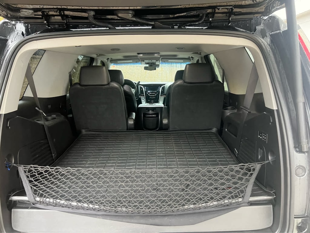 ENTERTAINMENT SYSTEM, REAR SEAT includes 9 screen DVD player (Blu-Ray capable) with remote control, two 2-channel wireless digital headphones, USBs (2.1 amp) and HDMI/HML inputs on rear of center console, sound compression, CD-R and CR-R/W capability, LED backlighting display, MP3 capable. Streaming available through HDMI and Digital Living Network Alliance (DLNA), WHEELS, 22 X 9 (55.9 CM X 22.9 CM) 12-SPOKE POLISHED ALUMINUM, CADILLAC USER EXPERIENCE WITH EMBEDDED NAVIGATION AM/FM stereo with 8 diagonal color information display featuring touch response, haptic feedback, gesture recognition, Natural Voice Recognition, Phone Integration for Apple CarPlay® and Android Auto® capability for compatible phone, Collection and Teen Driver. Five USB ports, including one in the articulating storage door/bin and auxiliary audio port (STD), ENGINE, 6.2L V8 WITH ACTIVE FUEL MANAGEMENT Spark Ignition Direct Injection (SIDI) and Variable Valve Timing (VVT), includes aluminum block construction (420 hp [313.2 kW] @ 5600 rpm, 460 lb-ft of torque [621 N-m] @ 4100 rpm) (STD), TRANSMISSION, 10-SPEED AUTOMATIC electronically controlled with overdrive, tow/haul mode and tap up/tap down shifting (STD). Cadillac Luxury with BLACK RAVEN exterior and JET BLACK interior features a 8 Cylinder Engine with 420 HP at 5600 RPM*.