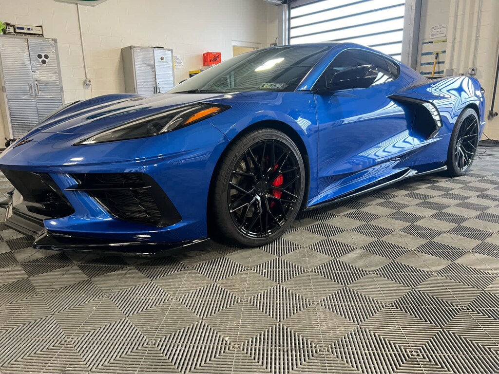 Z51 PERFORMANCE PACKAGE includes (J55) Z51 performance brakes, (FE3) Z51 performance suspension, (NPP) performance exhaust, (GM7) performance rear axle ratio, (G96) Electronic Limited Slip Differential (eLSD), (T0A) Z51 rear spoiler, front splitter, (XFQ) 245/35ZR19 front and 305/30ZR20 rear, blackwall, high performance tires and (V08) heavy-duty cooling system, SUSPENSION, Z51 PERFORMANCE WITH MAGNETIC SELECTIVE RIDE CONTROL includes (B4Z) Performance Traction Management, SEATS, GT2 BUCKET, WHEELS, 19 X 8.5 (48.3 CM X 21.6 CM) FRONT AND 20 X 11 (50.8 CM X 27.9 CM) REAR 5-OPEN-SPOKE CARBON FLASH-PAINTED ALUMINUM WITH MACHINED EDGE, AUDIO SYSTEM, CHEVROLET INFOTAINMENT 3 PREMIUM SYSTEM WITH CONNECTED NAVIGATION 8 diagonal HD color touchscreen, AM/FM stereo, Bluetooth® audio streaming for 2 active devices, Apple CarPlay® and Android Auto® capable, enhanced voice recognition, additional memory for in-vehicle apps, cloud connected personalization for select infotainment and vehicle settings. (STD), ENGINE, 6.2L V8 DI, HIGH-OUTPUT Variable Valve Timing (VVT), Active Fuel Management (AFM) (490 hp [365.4 kW] @ 6450 rpm, 465 lb-ft of torque [627.8 N-m] @ 5150 rpm) (STD), TRANSMISSION, 8-SPEED DUAL CLUTCH, INCLUDES MANUAL AND AUTO MODES (STD). Chevrolet 2LT with Elkhart Lake Blue Metallic exterior and Adrenaline Red interior features a 8 Cylinder Engine with 490 HP at 6450 RPM*.
