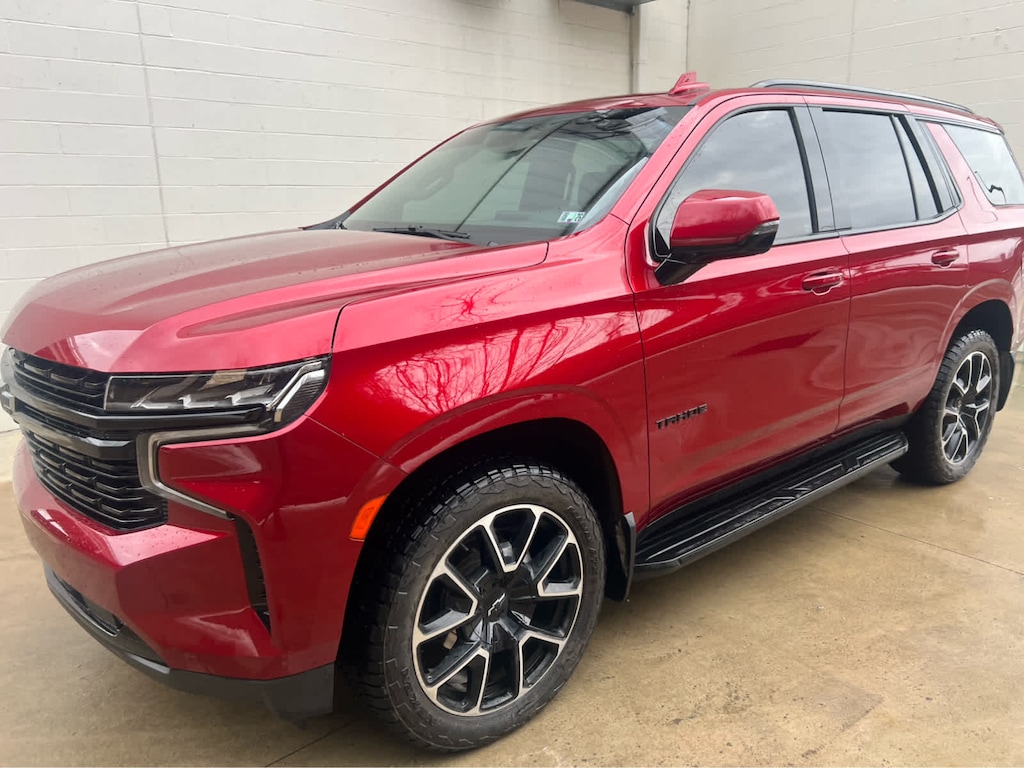 LUXURY PACKAGE includes (WPD) Driver Alert Package content, (UV2) HD Surround Vision, (UKK) Rear Pedestrian Alert, (A45) memory settings, (DXR) outside heated power-adjustable, power-folding, body-color mirrors with driver-side auto-dimming and integrated turn signal indicators, (N38) power tilt and telescopic steering column, (KI3) heated steering wheel, (KA6) second row outboard heated seats, (ATT) second row power 60/40 split-folding bench seats and (AS8) third row power 60/40 split-folding bench seats Also includes (KSG) Adaptive Cruise Control and (UGN) Enhanced Automatic Emergency Braking. SUNROOF, POWER PANORAMIC, DUAL-PANE, TILT-SLIDING with express-open and close and power sunshade, SEATS, SECOND ROW BUCKET, POWER RELEASE, AUDIO SYSTEM, CHEVROLET INFOTAINMENT 3 PREMIUM SYSTEM WITH GOOGLE BUILT-IN 10.2 diagonal HD color touchscreen, includes multi-touch display, AM/FM stereo, Bluetooth® streaming audio for music and most phones; featuring wireless Android Auto® and Apple CarPlay® capability for compatible phones, advanced voice recognition, in-vehicle apps, personalized profiles for infotainment and vehicle settings (STD), STEERING WHEEL, HEATED, ENGINE, 5.3L ECOTEC3 V8 with Dynamic Fuel Management, Direct Injection and Variable Valve Timing, includes aluminum block construction (355 hp [265 kW] @ 5600 rpm, 383 lb-ft of torque [518 Nm] @ 4100 rpm) (STD), TRANSMISSION, 10-SPEED AUTOMATIC electronically controlled with overdrive, includes Traction Select System including tow/haul (Standard with (L84) 5.3L EcoTec3 V8 engine only or (L87) 6.2L EcoTec3 V8 engine only.) (STD), DRIVER ALERT PACKAGE includes (UKC) Lane Change Alert with Side Blind Zone Alert and (UFG) Rear Cross Traffic Alert. Chevrolet RST with Radiant Red Tintcoat exterior and Jet Black/Victory Red interior features a 8 Cylinder Engine with 355 HP at 5600 RPM*.