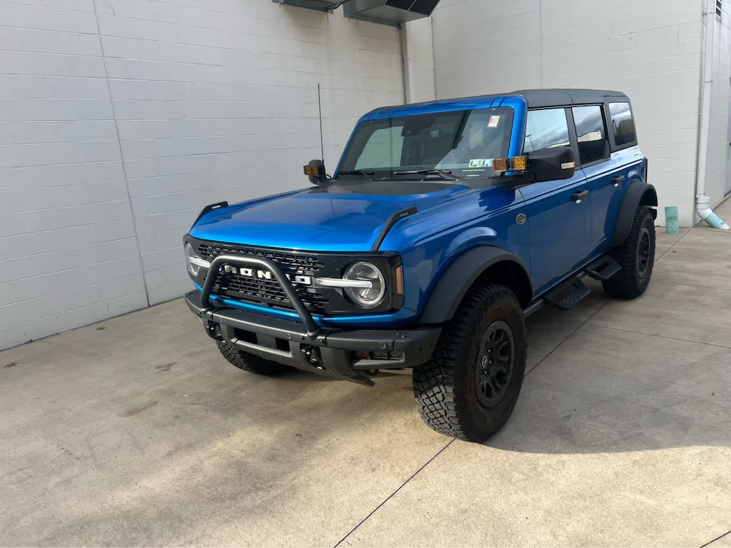 EQUIPMENT GROUP 354A HIGH/LUX PACKAGE Evasive Steering Assist, Heated Steering Wheel, Adaptive Cruise Control, Additional Sound Deadening, Information on Demand Panel, Wireless Charging Pad, Radio: B&O Sound System by Bang & Olufsen, 10 Speakers w/Subwoofer, Front Parking Sensors, 360-Degree Camera, Universal Garage Door Opener, Sideview Mirrors, LED approach lamps and LED spotlight, CARBONIZED GRAY MOLDED-IN-COLOR HARD TOP Rear-Window Defroster & Washer, Hard Top Sound Deadening Headliner, Front Row Top Panels Storage Bag, For on-vehicle storage, REMOVABLE HOOP STEP, TRANSMISSION: 10-SPEED AUTOMATIC trail control, trail turn assist and trail one-pedal driving (STD). Ford Wildtrak with Velocity Blue exterior and Medium Sandstone w/ Black Onyx interior features a V6 Cylinder Engine with 315 HP at 5500 RPM*.